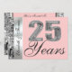 Till denna vackra inbjudan har lagts en mall för att enkelt lägga till valfritt namn eller namn på framsidan av kortet. Här är en elegant, formell och klassisk inbjudan med en stor "25" silver 3d-grafik med texten "Years" i stor formell stilskrift på framsidan. Anpassa enkelt den vackra matchande stilen på baksidan med namn, datum och annan information. Underbara Save The Date-inbjudningar för den stora 25-års silverjubileum eller 25-årsdag! En vacker silverkant runt både fram- och baksidan av inbjudan och en ljusrosa bakgrund, eller byt enkelt till en annan färg, bidrar till denna klassiska inbjudan. Till denna design har lagts fantastiska silverpaljetter (tryckta) som ser ut som ramar på båda sidor