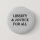 Alla frihet och rättvisa för står ut fett i modern typografi mot en bakgrund av löftet av trohet upprepat i liten typ. Svartvitt.