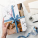 Modern calligraphy Valentine Day Photo Collage Wrapping Papper med 8 av dina foton och alla hjärtans dag, kärlek tillsammans med namn och initialer. Snygg unik papper för att du har packat den speciella gåvan till andra halvan.