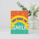 Alla hjärtans dagskort med meddelandet "Du får mig att le." Färg pallar: orange, gult, blått, violett ljus och vibrant färg og valentines kort Lycklig Valentine's Day!