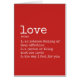 Välkomligt Alla hjärtans dagskort i en röd och vit design tryckt med definitionen av kärlek. Anpassa kortets insida med ett förtryckt meddelande eller lämna tomt och handskrift.