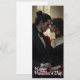 En romantisk, atmosfärisk bild som visar det intensiva sambandet mellan två älskare på en mystisk Alla hjärtans dag. Den elegant mannen i mörken kostym och kvinnan i en bedövande svart klänning står nära varandra, omgiven av röd ros och ljusglöden från ett ljus. Den dystra, gotiska bakgrunden understryker den tidlösa och passionerade stämningen i detta speciella ögonblick i kärlek.