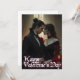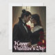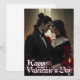 En romantisk, atmosfärisk bild som visar det intensiva sambandet mellan två älskare på en mystisk Alla hjärtans dag. Den elegant mannen i mörken kostym och kvinnan i en bedövande svart klänning står nära varandra, omgiven av röd ros och ljusglöden från ett ljus. Den dystra, gotiska bakgrunden understryker den tidlösa och passionerade stämningen i detta speciella ögonblick i kärlek.