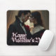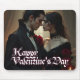 En romantisk, atmosfärisk bild som visar det intensiva sambandet mellan två älskare på en mystisk Alla hjärtans dag. Den elegant mannen i mörken kostym och kvinnan i en bedövande svart klänning står nära varandra, omgiven av röd ros och ljusglöden från ett ljus. Den dystra, gotiska bakgrunden understryker den tidlösa och passionerade stämningen i detta speciella ögonblick i kärlek.