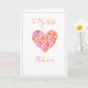 djupet av din kärlek på Alla hjärtans dag med vår Rosa och Lila blommor i hjärtkortet. Anpassa kortet med din frus namn och förvandla det till en unikt omhuldad keepy. Lägg till poetiska stämningar genom att markera vår hjärtliga slogan eller låta ditt eget ord väva teatern av din kärlek-artikel. Höj magin på Alla hjärtans dag genom att visa upp ett lika vackert kort som det gränslösa kärlek som ni båda !