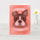Det här enastående kortet visar en detaljerad illustration av en Fransk Bulldog med en rik, varm palett, inställd mot en mjuk korallbakgrund. Utformningen har en banderoll med texten "I WOOF You" med en hjärtsymbol som är centrerad ovanför hund och som betonar det tilltalande temat. Perfekt för hundälskare, detta kort för anpassade är perfekt för Alla hjärtans dag, årsdagar eller tillfälle där man vill sprida kärlek på ett lekfullt, sällskapsinspirerat sätt. Dess konstnärliga charm gör det till ett utmärkt val för hjärtklaffande.