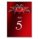 Vackra, vita hjärtan i rullan, på djupt rött kort i anpassningsbar bord för din Alla hjärtans dag i bröllop. Anpassa siffror och teckensnitt efter dina önskemål.