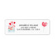 Modern Alla hjärtans dag-returetiketter med hjärtan i kuvertet, hjärtformade ballong och adress. Perfekt för Alla hjärtans dag och Galentins dag.