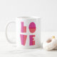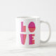 En modern, vismisk och söt Alla hjärtans dag mugg med stor, skarp rosa KÄRLEK typografi gjord av block. Det här är en underbar Alla hjärtans dagspresent till en flickvän som kärlek typografi eller grafisk design.