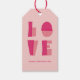 En modern, vismisk och söt Valentindags-märkre med stor, skarp rosa KÄRLEK-typografi gjord av block.