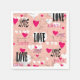 Alla hjärtans dagdesign med rosa och röda hjärtan med texten "kärlek"