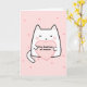 Bedårande liten katt på rosa bakgrund strödd med hjärtan håller ett hjärta med det söta ordspelet, du hade mig vid mjau. Inuti texten står det, Furr-äkta. Du kan anpassa meddelandet genom att lägga till, ändra eller ta bort det för att skriva ditt eget meddelande för en anpassad hälsning. Berätta för någon som älskar söta kattungar och rosa hjärtan precis hur du känner för deras födelsedag eller Alla hjärtans dag.