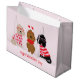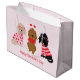 Cute illustration av tre Mini Goldendoodle hundar, klädd i rött och rosa för Valentines day. Perfekt för djurälskare under Valentines day-säsongen.