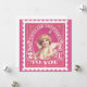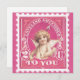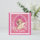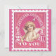 En vintageillustration med en cupid på ett rosa frimärke som lyder "Loveland Greetings 2 U (till dig)." Hjärt detalj längst ner.