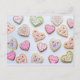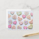 Alla hjärtans dags hjärtekakor på en blå bakgrund med talesätt och dekorationer