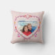 Modern hjärtform av ditt favoritfoto med dekorativt hjärta på rosa kuddcover.