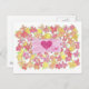 Skicka Alla hjärtans dags hälsningar med detta vykort med ljusa orange, gula och rosa vilda blommor med rosa hjärta och kärlek.