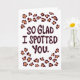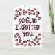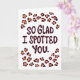 Vårt Alla hjärtans dag-kort till pojkvännen, med orden "Så glad att jag fick syn på dig", är ett idealiskt sätt att uttrycka din tillgivenhet för din pojkvän. Med sin originella bokstavsdesign och lekfulla leopardmönster kommer detta kort säkert att få din älskade att känna sig omhändertagen och värdefull. Dess moderna stil är perfekt för honom.
