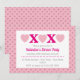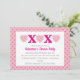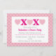 Vackra rosa inbjudningskort för din Alla hjärtans dags-fest. Kärlekshjärtan och kyssar längst upp. Nedan finns mallar för att lägga till dina detaljer. Bakgrunden är rosa med ett mönster av små rosa kärlekshjärtan.