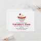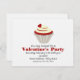 En inbjudan till Alla hjärtans dag-fest med en illustration av en röd sammets-cupcake krönt med ett rött hjärta. Anpassa den grå och röda texten med detaljer om ditt evenemang.