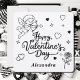 Fira kärlek med tidlös elegans med detta romantiska Alla hjärtans dags-kort. Handdesignat med en delikat, ljus doodle-illustration, har detta glas en charmig kerub i övre hörnet, graciös "Happy Valentine's Day"-kaligrafi i mitten och ett klassiskt rosmotiv nära basen. Spridda hjärtan och gnistrande stjärnor fullbordar designen och skapar en drömsk och hjärtlig estetik som känns både lekfull och raffinerad. Konsten ger designen en mjuk, elegant finish som gör den till en vacker souvenir långt efter att tillfället har passerat. Lägg till din älskades namn på framsidan och anpassa ditt kärleksbudskap på baksidan för en genomtänkt personlig Alla hjärtans dags-gåva till henne eller honom, en vacker present för par