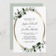 Eucalyptus Guld Metallic Allt i en QR Code White and Sage bröllopsinbjudan... Vår dubbla stod på framsidan och baksidan av en luxe botanisk bröllopsinbjudning med guld metallisk oval ram som är märkt med Eucalyptus löv som är skalad med hjälp av nödhuden över en skarp vit bakgrund. Tillbaka till inbjudan innehåller all information som du normalt skulle se på separata kort i bröllop-paketet. Den här moderna bröllopsinbjudan från stil var designad för att vara både elegant- och budgetmedveten.. för att inte nämna tidsbesparing. På baksidan finns det också en QR-kodgrafiklamall som du kan ersätta med din egen kod genom att skriva in högerna URL för din bröllop-webbplats... på anpassningsmallen där du också reviderar exempeltexten med dina egna uppgifter.