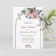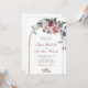 All in One Vinterrosor Eukalyptus Guld Båge Bröllopsinbjudan... Vår unika "All in One" blomstergestaltade vinterbröllopsinbjudan har en förgylld valvbroderi med en vacker bukett av rosa och vinröda rosor och eukalyptusgrönska som gränsar till texten på bröllopsinbjudan. Baksidan av inbjudan innehåller alla detaljer som du vanligtvis ser på separata kort i bröllopspaketet. Denna moderna bröllopsinbjudan designades för att vara både elegant och budgetvänlig... för att inte tala om tidsbesparande. På baksidan finns också en QR-kod grafisk mall som du kan ersätta med din egen kod (eller ta bort om du inte planerar att använda en). All exempeltext kan enkelt revideras med din egen information