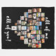 Den här svarta fleece-filten har ett 47 hjärta fotocollage-hjärta ram med svarta konturer för din familjs personliga foton med orden "jag (kollage eart) all of you" tryckt i ett vitt penselskript. 18 foton är 5 x 7 storleka kortplatser och 29 foton är 1 x 1 stora kortplatser. Anpassa den här filten med året som det här trycktes. Flottarfilten är en underbar mors dag-ge eller jubileumsgåva.