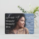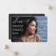 Modern fotoannonsering i studenten innehåller ett vågrät- eller landskapsinriktat foto på framsidan, med "Klass 2022" översatt på lämnat med vit text. Din student namn och skolan visas under. Lägg till ett personligt meddelande på baksidan, tillsammans med ett ytterligare foto.