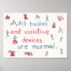 Främja integrering av funktionshindrade och acceptans av olika organ. Den här poster innehåller texten "Alla kroppar och hjälpmedel är normala" tillsammans med stick figurer som visar sin hjälpmedelsteknik. Denna poster skulle vara underbar i ett klassrum, klinik eller sovrum. Designad och målad av en funktionshindrad konstnär. Ursprungligt medium var akryl på papper. (Den poster du får trycks i bläck av Zazzle.)