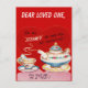 Det här vykortet har en valentinbild för vintagen, med en tekanna och en kopp te. Texten lyder: "Jag är helt upphetsad över dig valentine-du kostym mig till ett te!" Texten färg i bakgrunden och "Bästa Loved One" kan anpassas efter behov.