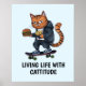 Denna poster av en tecknad alley cat avslöjar en känsla av missöde. Han balanserar skickligt på en skateboard. I det ena tass håller katten med tillförsikt en utsökt burgare och i det andra tass klämmer han ihop en liten papper påse fylld med guldchip. Under designen står det i den djärva texten "Living Life With Cattivite", som kompletterar temat.