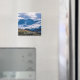 Das Foto auf dem Magnet habe ich während einer Reise in die Berge gemacht. Zu dem Zeitpunkt war ich leider ziemlich erkältet, doch habe es mir nicht nehmen lassen, meine Familie auf die Bergstationen der Seilbahnen zu begleiten. Wir fuhren am ersten Tag nach Oberstdorf und wollten aufs Nebelhorn. Eine lange Schlange war am Eingang der Talstation, denn das Nebelhorn war schon immer ein beliebtes Wanderziel. Trotz der Menschenmassen haben wir uns angestellt und fuhren hinauf. Während wir uns im Restaurant der Station Höfatsblick aufwärmten, zog ich mit meiner Kamera raus und fotografierte die unzähligen Berggipfel rund ums Nebelhorn und Oberstdorf. So entstand auch dieses Bild und ist schon allein deswegen für mich besonders, weil es eine Erinnerung an meine ersten Bergfotos mit Opas abgelegter Spiegelreflexkamera ist. Und eine Erinnerung an die Bergreise, die ich erkältet erlebte.