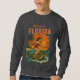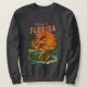 This kitschy throwback beach art is 'only in Florida' energy! A wild pin-up catches a wave as she rides an alligator like a surfboard. The surf beach at sunset scene has bold orange and red colors, complete with palm trees blowing in the tropical breeze. Add a little Florida chaos to your outfit with this fun sweatshirt. | Pro-Tip: For vibrant colors we recommend vivid printing for most apparel. For white apparel select classic printing.