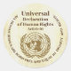 Dessa rund klistermärken har en rustiskt brun bakgrund och ingår i artikel 01 i FN:s allmänna förklaring om de mänskliga Högerna: Alla människor föds fria och jämlika i värdighet och höger. Detta dokument, som består av 30 artiklar, omfattar alla människors höger och friheter. Det antogs den 10 december 1948 efter det att 48 av de 58 nationerna röstade för (åtta avstod och två misslyckats att rösta eller avstod från att rösta.)