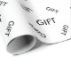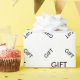 Generiskt omslutande pappert stater, självklarheten med ord GIFT i vanlig svart text, upprepad på vit bakgrund. Roligtens sätt att figurera din present för ett trendig generisk temad födelsedagsfest eller annat firande.