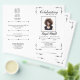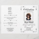 Att fira det foldade programmets liv i svartvitt, med elegant typsnitt. Det här begravningsprogrammet är ett speciellt sätt att minnas din älskade. Redigera enkelt alla formuleringar för att passa de tjänster och minnen som du vill . Lägg till ett foto av din älskade tillsammans med deras namn och levnadsår. På baksidan kan du skriva obituarien och programmet. Det finns gott om utrymme för att beskriva din minnesstund. Berätta för mig om du behöver hjälp med att hitta matchande objekt. Fäst dig själv för en elegant och ett konkret begravningsprogram!