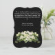 Visa uppskattning med nåd och värme med detta vackert designade tack för begravningen. Perfekt för att ha uttryckt tacksamhet efter en minnesstund, begravning eller firande i livet gör detta kort det möjligt för din familj att erkänna kärlek, stöd och närvaro av vänner och släktingar under din tid av förlust. Detta kort är en del av den fredsplanerade samlingen och ger utrymme för ett uppriktigt budskap och är helt och hållet anpassade - lägg till din älskade namn, ett foto eller en personlig anteckning för att göra det verkligt meningsfullt. Anpassade med foton, text och färg via Zazzle-redigerare Ideal for begravningar, hemtjänster och utomhusminnesmärken Matte- eller halvglanshalssalternativ Enkelt anpassade - lägg till foton, namn eller ett citat Perfekt för att skicka meddelanden till gäster, supportrar och präster efter tjänsten