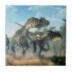 Tre allosauruses sparkar dammar av upp, som de jagar längs ett stenigt spårar skapat av passagen av stora dinosaurs. Djupt - gröntväxter fodrar sidorna av slingan" "stund som en barrträdskog dominerar bakgrunden. Över huvudet moln driver till och med de förhistoriska himmlarna för blått. Allosaurusen var en theropoddinosaur från den Jurrassic perioden. Några paleontologists theorize att Allosaurs var packejägare" "så mig though som den kan är rolig att visa en trio av varelserna på jakten för detta senaste tillägg till min paleoartserie.