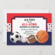 Anpassa den här Allstar-födelsedagsinbjudan med din information. Underbaren för en sport party omfattar basket, baseboll, fotboll och fotboll.