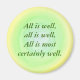 En färgad bakgrund av grönt, blått och gult, med bekräftelsen: "Allt är bra, allt är bra. Allt är säkert bra." på magneter. Du kan anpassa med en annan bekräftelse eller ett annat meddelande efter eget val och välja dina magneter storlekt och stil. www.zazzle.com/CherylsArt*/
