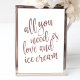 En elegant och modern bröllopsskyllt med texten "Allt du behöver är kärlek och glass" i ett utåtriktat skrivstil, den glittriga texturen ger en festlig och glamourös touch. Bakgrundsfärgen kan anpassas efter dina behov och önskemål, vänligen kontakta mig om du har några speciella önskemål.