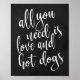 Allt du behöver är kärlek och hett hundar-skyltsky poster