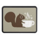En ekorre som håller kaffe mugg och hjärtformade ånga kommer ut.