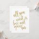 En elegant, modern bröllopsskyllt med texten "Allt du behöver är kärlek och öppen bar" i ett utåtriktat typsnitt, den glittriga texturen ger en festlig och glamourös touch. Bakgrundsfärgen kan anpassas efter dina behov och önskemål, vänligen kontakta mig om du har några speciella önskemål.