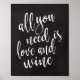 Allt du behöver är kärlek och vin 8x10-skyltskylt poster