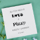 Allt du behöver är kärlek och pizza, blöjor för en möhippa eller en repetitionsmiddag party. Den moderna romantiska designen innehåller traditionellt svart brev.