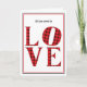 Allt du behöver är KÄRLEK, ett ord med fyra bokstäver skrivet med en svart och röd buffelkaror art deco serif stil för Alla hjärtans dag. En sofistikerad tolkning av ett rustikt lumberjack rött och svart karomönster. Texten på insidan säger, Allt jag behöver är du. Texten på framsidan och insidan kan anpassas med ditt eget hjärtliga meddelande.