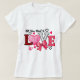 En vit skjorta med ord: "Allt du behöver är kärlek" I Rosa, Röd, med en båge, några hjärtan och en fjäril.