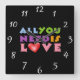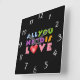 Allt du behöver är Kärlek-väggsluss Fyrkantig Klocka